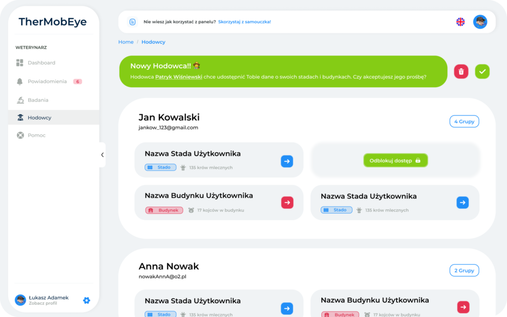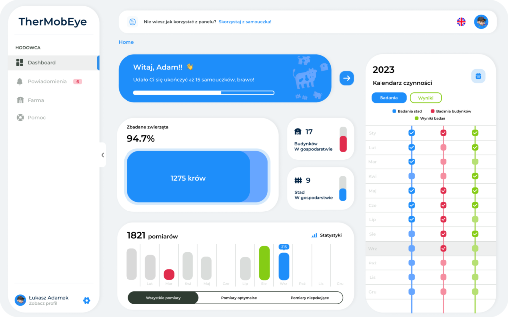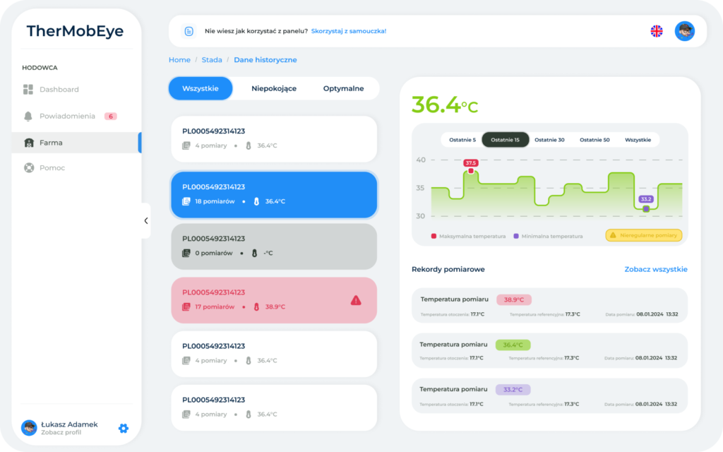 TherMobEye to innowacyjna aplikacja dla hodowców i specjalistów weterynarii, umożliwiająca precyzyjne pomiary oraz zaawansowaną analizę danych. Wszystko w jednym miejscu – na Twoim telefonie lub w przeglądarce.